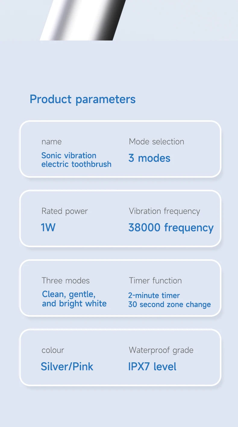 Engineered with high-frequency vibrations and a sleek ergonomic design, this toothbrush ensures efficient cleaning in every corner of your mouth. Its lightweight, modern build makes it perfect for both home and travel.